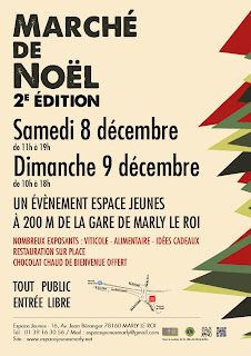 Juste un petit mot pour vous indiquer que je serai présente au marché de Noël de Marly le Roi (Yvelines) ce weekend. Je proposerai une variété de sablés de Noël, de financiers et autres gourmandises sucrées ainsi que des tartes et autres cakes salés pour manger sur place le midi.